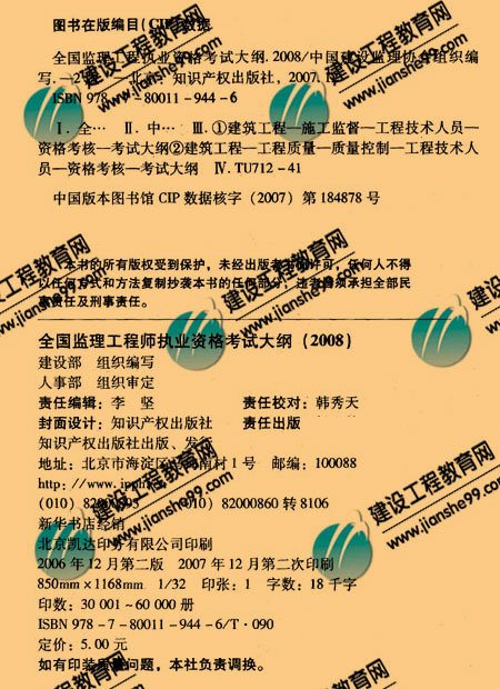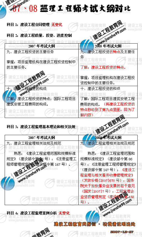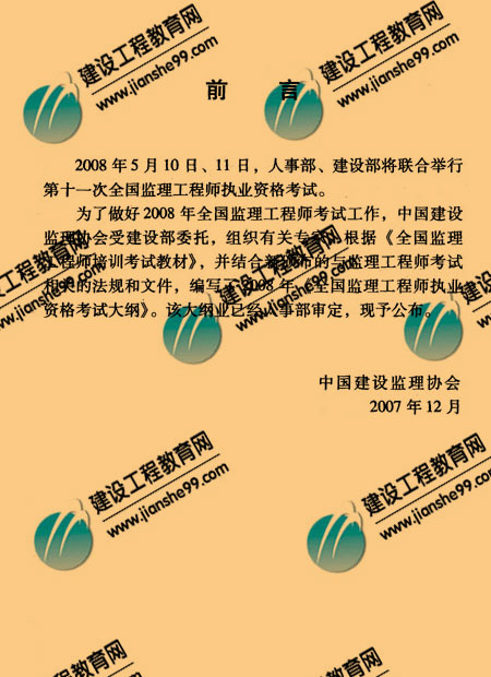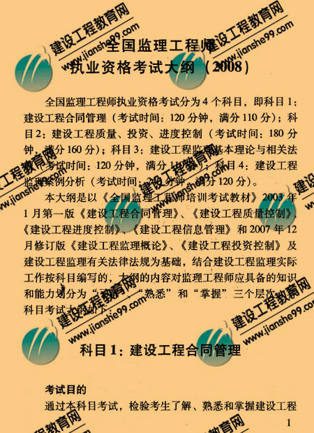 2008年度全國(guó)監(jiān)理工程師執(zhí)業(yè)資格考試大綱