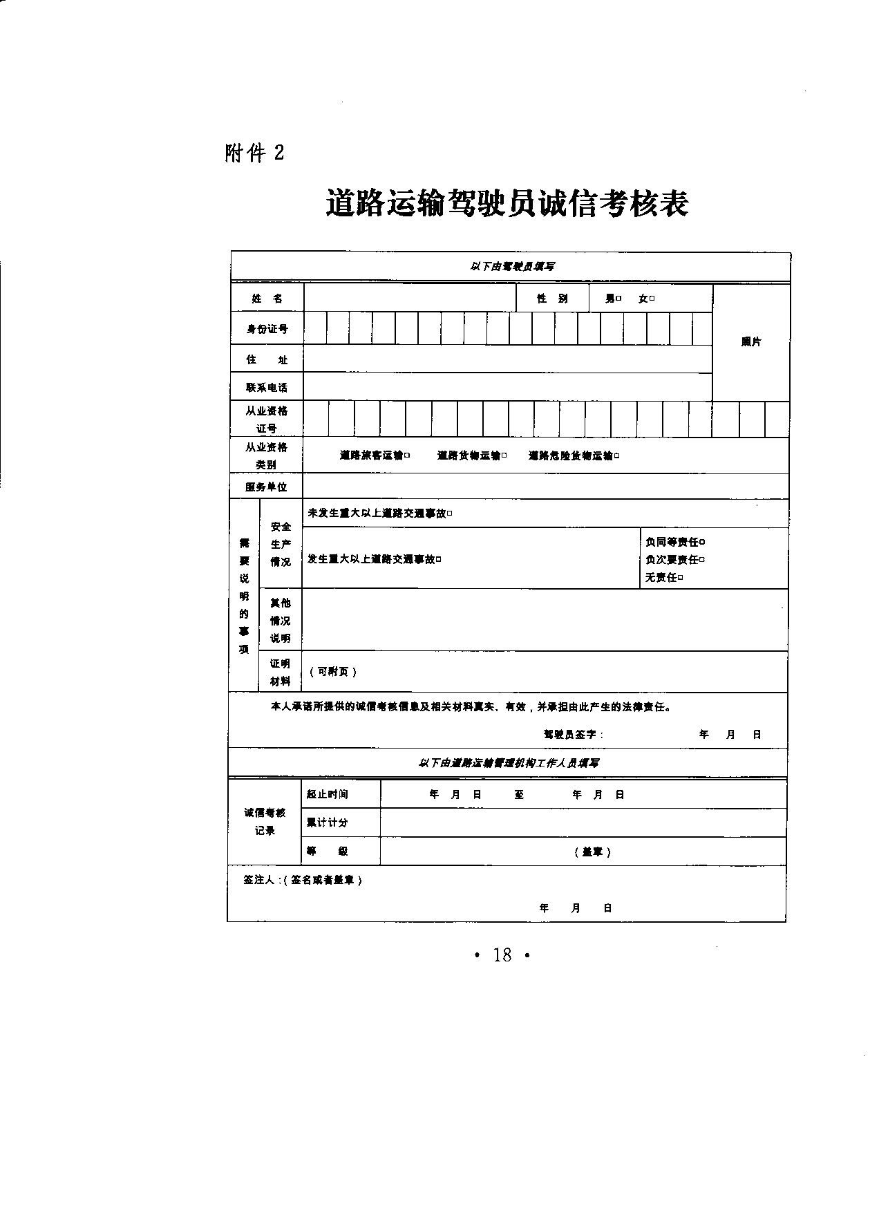 (五)《道路運輸駕駛員誠信考核表》(式樣見附件2)。