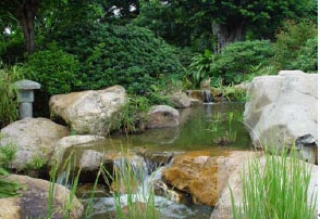 生態(tài)水池是適于水下動植物生長,又能美化環(huán)境、調節(jié)小氣候供人觀賞的水景。在居住區(qū)里的生態(tài)水池多飼養(yǎng)觀賞魚蟲和習水性植物(如魚草、蘆葦、荷花、蓮花等),營造動物和植物互生互養(yǎng)的生態(tài)環(huán)境。水池的深度應根據(jù)飼養(yǎng)魚的種類、數(shù)量和水草在水下生存的深度而確定。一般在0.3-1.5m,為了防止陸上動物的侵擾,池邊平面與水面需保證有0:15m的高差。水池壁與池底需平整以免傷魚。池壁與池底以深色為佳。不足0.3m的淺水池,池底可做藝術處理,顯示水的清澈透明。池底與池畔宜設隔水層,池底隔水層上覆蓋0.3-0.5m厚土,種植水草。