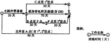 第二個(gè)工作隊(duì):主副貫通巷→B點(diǎn)至F點(diǎn)→F點(diǎn)至2岔點(diǎn),即①→②→③→⑤(1分)。