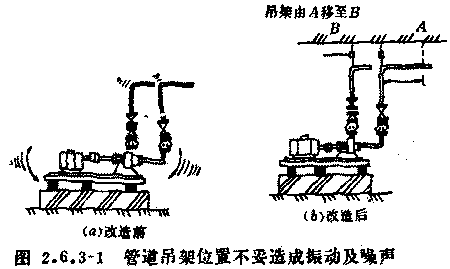 對策:將管道的支吊架移至立管拐彎處,并將鋼架上增加重量,以求穩(wěn)定。如圖2.6.3-1(b)。