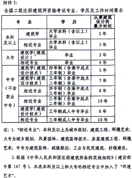 2、具有助理建筑師、助理工程師以上專業(yè)技術職稱,并從事建筑設計或者相關業(yè)務3年(含3年)以上人員,可以申報考試;