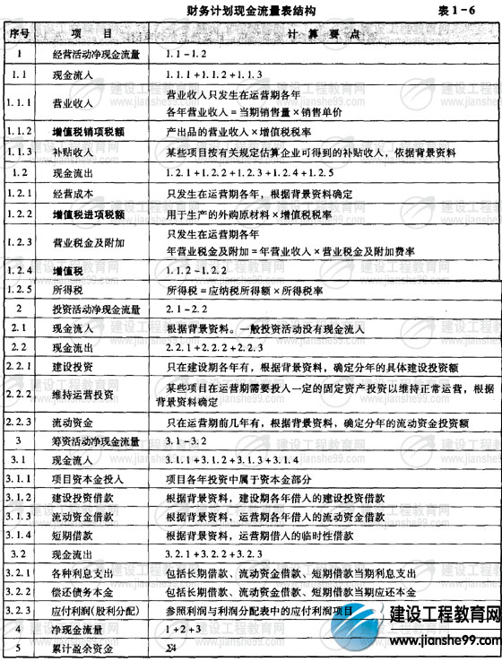 本章應(yīng)掌握的概念、方法主要有:建設(shè)項(xiàng)目總投資的構(gòu)成、名義利率與實(shí)際利率、建設(shè)期利息的計(jì)算公式、投資估算方法、財(cái)務(wù)分析輔助報(bào)表(主要包括:建設(shè)投資估算表、建設(shè)期利息估算表、總成本費(fèi)用估算表)、財(cái)務(wù)分析報(bào)表(包括:項(xiàng)目投資現(xiàn)金流量表、項(xiàng)目資本金現(xiàn)金流量表、利潤與利潤分配表、財(cái)務(wù)計(jì)劃現(xiàn)金流量表、借款還本付息計(jì)劃表)、財(cái)務(wù)評(píng)價(jià)指標(biāo)體系(包括:財(cái)務(wù)凈現(xiàn)值、投資回收期和內(nèi)部收益率等盈利能力分析指標(biāo)的計(jì)算;利息備付率、償債備付率等償債能力分析指標(biāo)的計(jì)算;累計(jì)盈余資金等生存能力指標(biāo)的計(jì)算以及盈虧平衡點(diǎn)生產(chǎn)能力利用率、盈虧平衡點(diǎn)產(chǎn)量、敏感度系數(shù)、臨界點(diǎn)等不確定分析)。