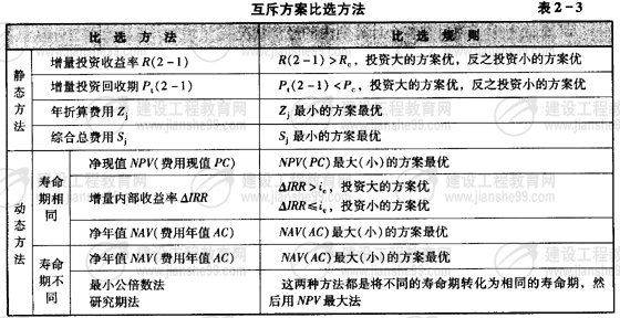 3.互斥方案比選方法(表2-3)
