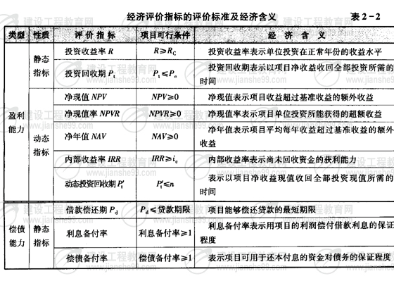 1.經(jīng)濟(jì)評(píng)價(jià)指標(biāo)的決策規(guī)則及涵義(表2-2)