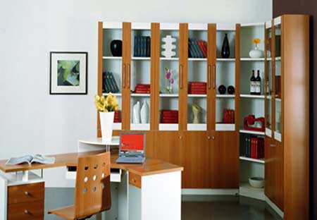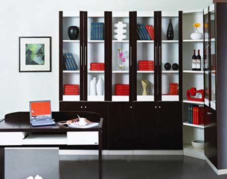 這兩款時尚書柜,不僅造型簡單、實用,再配于顏色考究的花瓶等裝飾品,一改以往書房凝重的氛圍,讓學習、工作變得輕松快樂。在整體莊重的柜體色調(diào)上,白色的頂端讓人遐想無限。