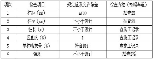 。2)、樁距、樁長、噴灰量、樁體強度,鉆桿傾斜度符合下列規(guī)定: