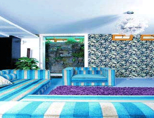 打開(kāi)聽(tīng)覺(jué)、視覺(jué),一切感觀。自然的采光景觀和綠色墻紙?zhí)羝鹨晃莸那逖。深灰藍(lán)地面、條紋沙發(fā)支起一墻攀滕。