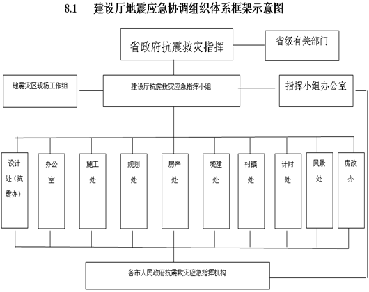 建設(shè)廳地震應(yīng)急協(xié)調(diào)組織體系框架示意圖見附錄8.1