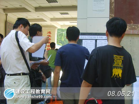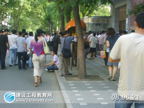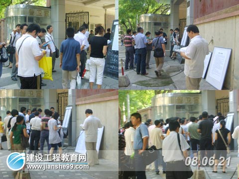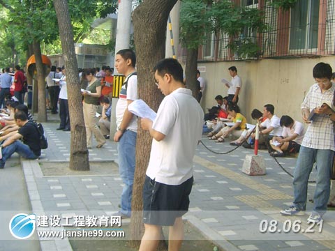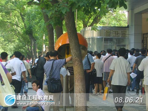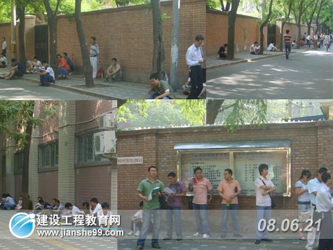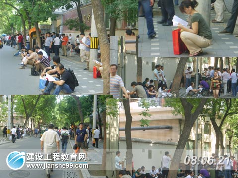 建設(shè)工程教育網(wǎng)6月21日訊 今天(2008年6月21日),2008年全國二級(jí)建造師考試如期舉行(除四川延考外),這是本年度建筑類上半年考試中的最后一類,而且二級(jí)建造師的從業(yè)人群是非常多,地震的發(fā)生,對(duì)工程質(zhì)量的把關(guān)更加嚴(yán)格,所以獲得執(zhí)業(yè)資格尤為重要??荚囋?點(diǎn)準(zhǔn)時(shí)舉行,各個(gè)考點(diǎn)外已經(jīng)站滿了考生,有的在考點(diǎn)外和同考的人互相交流著,有的考生則在考點(diǎn)外進(jìn)行最后的沖刺準(zhǔn)備,建設(shè)工程教育網(wǎng)記者也奔赴各考點(diǎn),進(jìn)行追蹤報(bào)道。