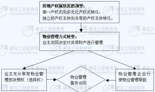 房地產(chǎn)是人類賴以生存的基本物質(zhì)資料,無(wú)論生活或是生產(chǎn)經(jīng)營(yíng),都不能與之分離。隨著社會(huì)生產(chǎn)力的發(fā)展和社會(huì)資源配置的需要,幾千年來(lái)單一產(chǎn)權(quán)式的房地產(chǎn)形態(tài),已經(jīng)不再適應(yīng)經(jīng)濟(jì)社會(huì)發(fā)展的要求。特別是近代建筑科學(xué)技術(shù)的進(jìn)步,為節(jié)約社會(huì)物質(zhì)資源和改善人類生活條件,不斷創(chuàng)造出豐富的建筑形式。目前,設(shè)備設(shè)施齊全的組團(tuán)建筑、住宅小區(qū),已經(jīng)成為現(xiàn)代房地產(chǎn)的主流形態(tài)。物質(zhì)狀態(tài)的變化必然導(dǎo)致產(chǎn)權(quán)所有關(guān)系的變化。房地產(chǎn)權(quán)屬已經(jīng)由獨(dú)立的產(chǎn)權(quán)主體向共有的產(chǎn)權(quán)主體轉(zhuǎn)化。目前,除少數(shù)情況外,建筑物及配套的設(shè)施、設(shè)備以及用地,基本已被多個(gè)產(chǎn)權(quán)人區(qū)分所有,其中的每個(gè)產(chǎn)權(quán)人僅享有部分產(chǎn)權(quán)并承擔(dān)專有部分的管理修繕義務(wù),全體業(yè)主對(duì)物業(yè)共有部分共同承擔(dān)著維護(hù)責(zé)任。因此,傳統(tǒng)的房屋管理模式不能適應(yīng)房地產(chǎn)物質(zhì)形態(tài)和權(quán)屬狀況的改變。