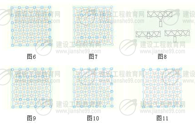 1、周邊支承網(wǎng)架(圖6):該形式傳力直接,受力均勻,是采用最普通的一種支承形式。