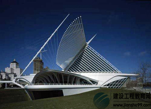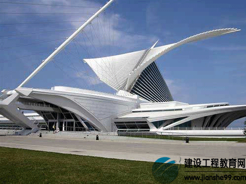 西班牙建筑師卡拉特拉瓦是世界上最著名的創(chuàng)新建筑師之一,可以說(shuō)是建筑仿生學(xué)的集大成者,被稱為"建筑師中的詩(shī)人".密爾沃基市藝術(shù)館同樣體現(xiàn)了他血液里那種西班牙人特有的奇異想像力。