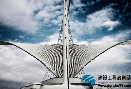 像海鳥(niǎo)一樣的密爾沃基市藝術(shù)館(MilwaukeeArtMuseum),是一座會(huì)動(dòng)的建筑。西班牙建筑師卡拉特拉瓦(SantiagoCalatrava)通過(guò)機(jī)械傳動(dòng)裝置,能夠?qū)⒔ㄖ敳康膬蓚(gè)像翅膀一樣張開(kāi)的鋼結(jié)構(gòu)羽翼,在陽(yáng)光下慢慢張開(kāi)。這個(gè)結(jié)構(gòu)體系是由兩根平行的、傾斜47度的桅桿靠拉力支撐,一根桅桿位于屋面的中軸線上,另一根位于通向藝術(shù)館入口的橋上,這些元素共同創(chuàng)造出了詩(shī)意般的結(jié)構(gòu)體系和運(yùn)動(dòng)感的整體效果。