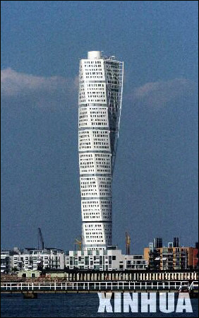 該大廈由西班牙建筑師卡拉特拉瓦設(shè)計(jì),高189米,共有9個(gè)區(qū)層,每區(qū)層有5層,有152個(gè)單元,每區(qū)層都旋轉(zhuǎn)少許,使整棟大廈共旋轉(zhuǎn)90度。該大廈最底下兩 個(gè)區(qū)層是辦公室,其余7個(gè)區(qū)層共有150個(gè)豪華住宅單元,總面積1.5萬平方米?ɡ乩弑硎荆O(shè)計(jì)這座大廈的靈感來自一件身體扭動(dòng)的人體雕塑。他說:“我希望建造與別人不同、技術(shù)上獨(dú)一無二的東西!爆F(xiàn)在這座極具特色的建筑已成為瑞典南部城市馬爾默的標(biāo)志。
