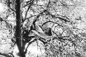 家住總府路的李祥每天下班都要經(jīng)過(guò)大慈寺路光大銀行門(mén)口,昨日,正當(dāng)他走到光大銀行時(shí),被天上的飛鳥(niǎo)吸引住了,抬頭一看,發(fā)現(xiàn)光大銀行門(mén)前10米高的大樹(shù)上有個(gè)“鳥(niǎo)巢”。