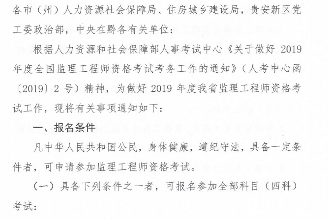 貴州2019年全國(guó)監(jiān)理工程師資格考試考務(wù)工作的通知