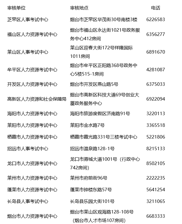 各縣市區(qū)報名審核地址及咨詢電話見下表: