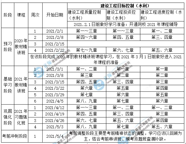 2021年監(jiān)理水利控制預(yù)習(xí)計劃表(2月1日-考試)