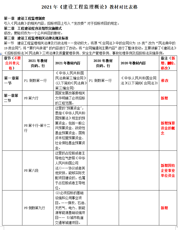 2021年監(jiān)理工程師《建設(shè)工程監(jiān)理概論》教材對比已經(jīng)為考生準(zhǔn)備好,具體如下: