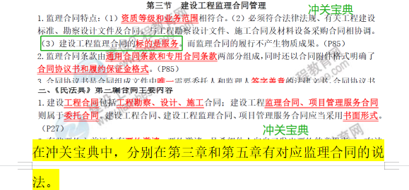 在沖關(guān)寶典中,分別在第三章和第五章有對應(yīng)監(jiān)理合同的說法。
