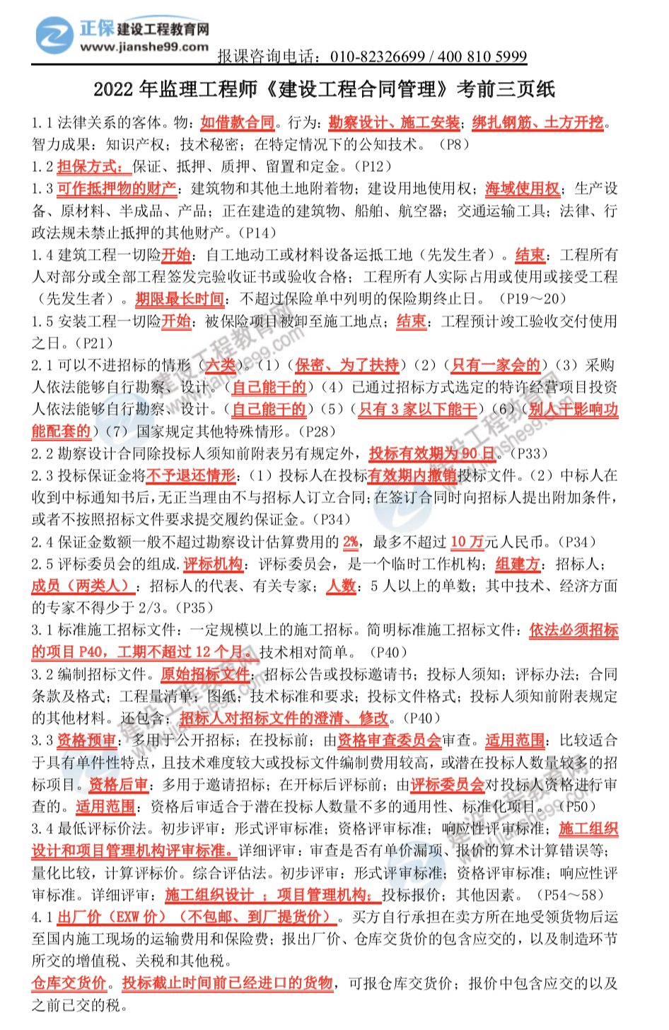 建設(shè)工程教育網(wǎng)的老師們精心整理了2022年監(jiān)理工程師考前三頁紙發(fā)給大家,趕快來領(lǐng)取吧~