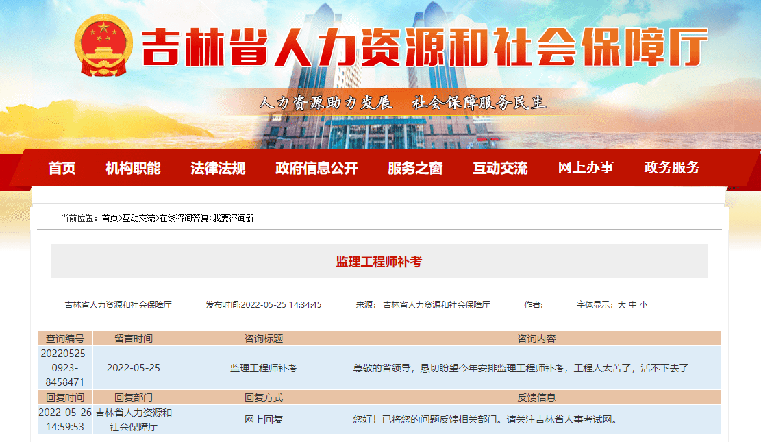吉林人社廳:已將您的問題反饋相關(guān)部門。請關(guān)注吉林省人事考試網(wǎng)。