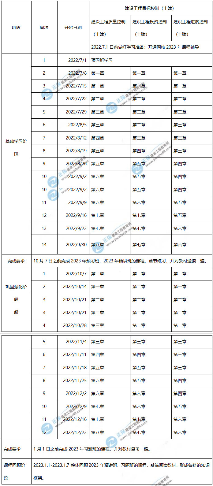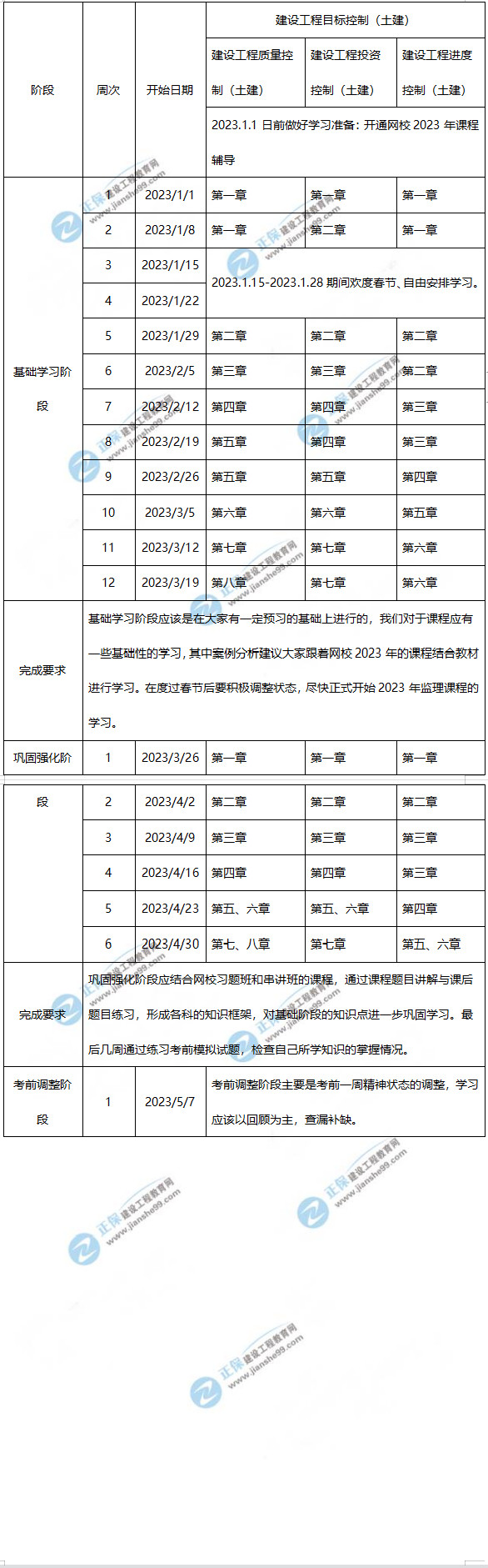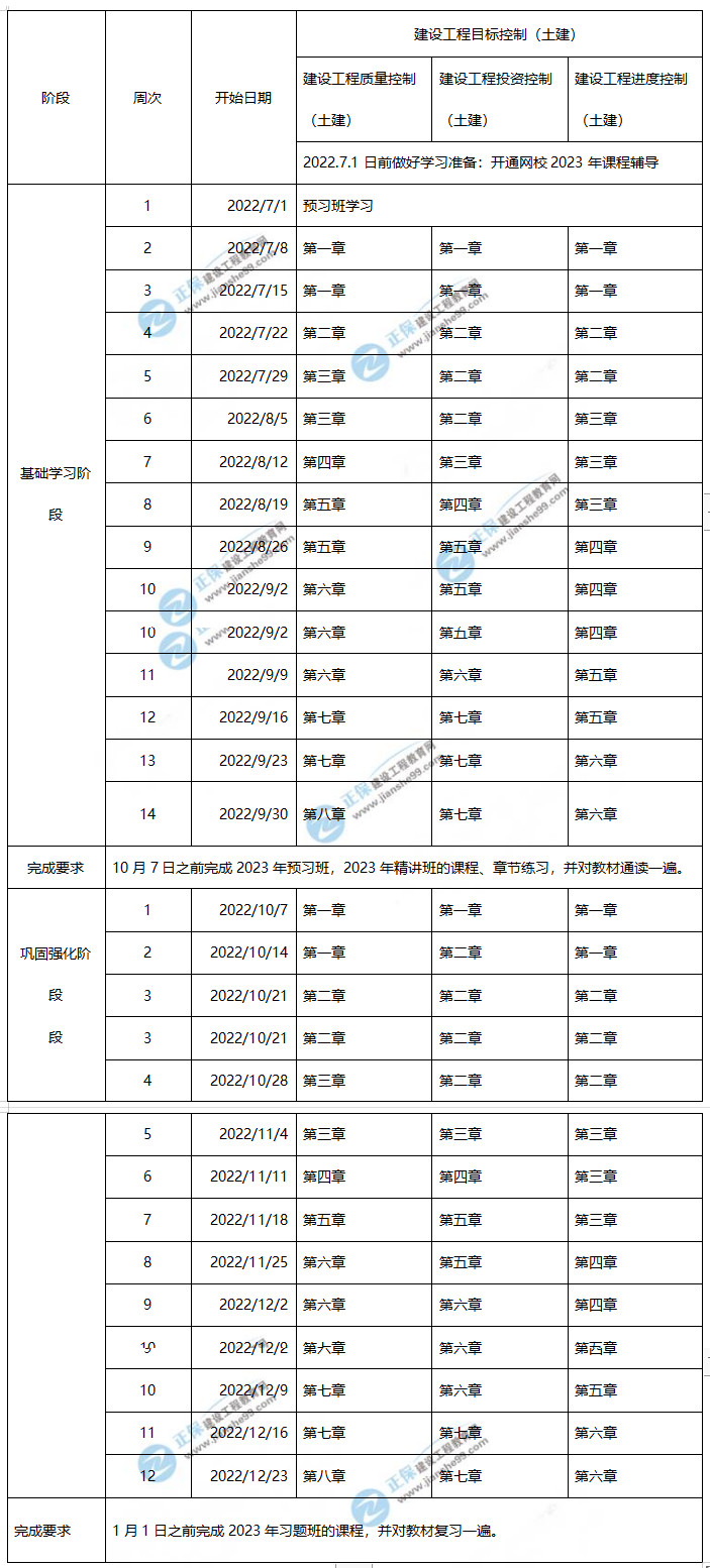 2023年監(jiān)理工程師土建控制學(xué)習(xí)計(jì)劃時(shí)間表