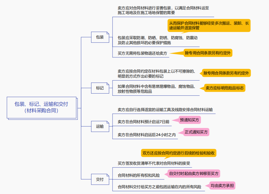 監(jiān)理工程師合同管理包裝、標(biāo)記、運(yùn)輸和交付(材料采購(gòu)合同)思維導(dǎo)圖