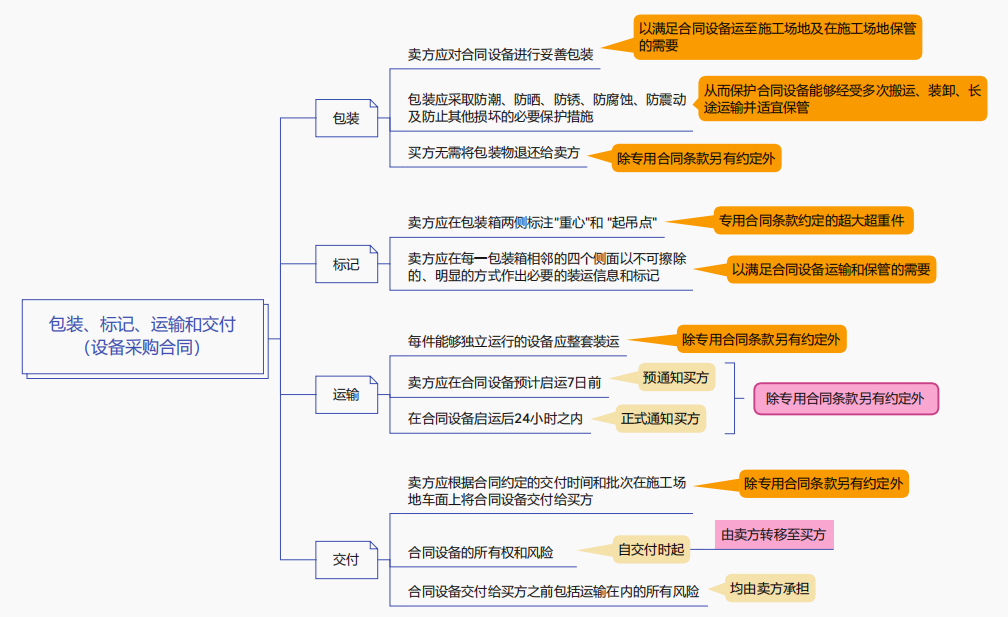 監(jiān)理工程師合同管理包裝、標(biāo)記、運(yùn)輸和交付(設(shè)備采購(gòu)合同)思維導(dǎo)圖