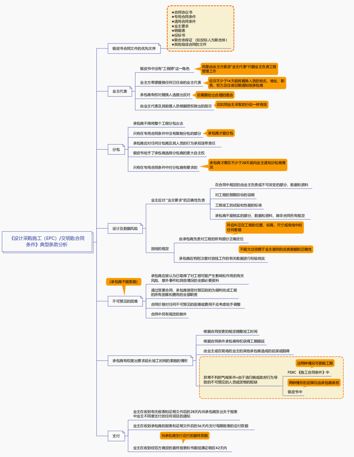 《設(shè)計(jì)采購施工(EPC)交鑰匙合同條件》典型條款分析思維導(dǎo)圖