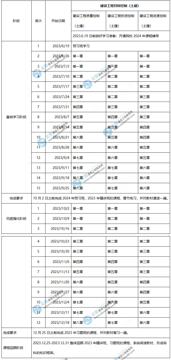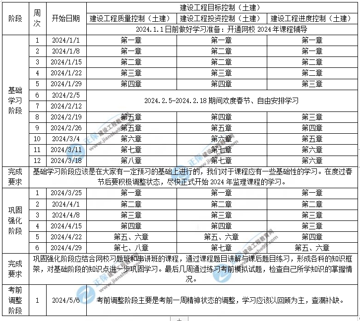 2024年監(jiān)理工程師土建控制學(xué)習(xí)計劃時間表(1-5月)
