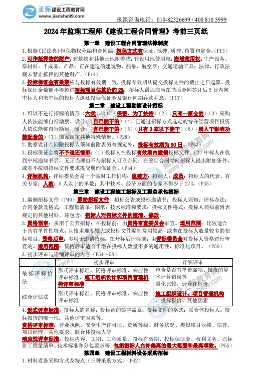 建設(shè)工程教育網(wǎng)的老師們精心整理了2024年監(jiān)理工程師合同管理考前三頁紙,免費(fèi)發(fā)給大家,臨時(shí)抱佛腳也是有用的,趕快來領(lǐng)取吧~