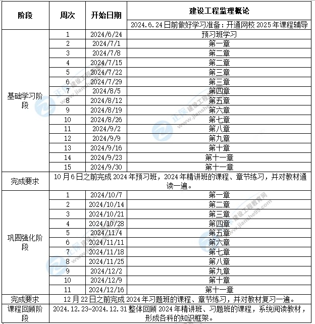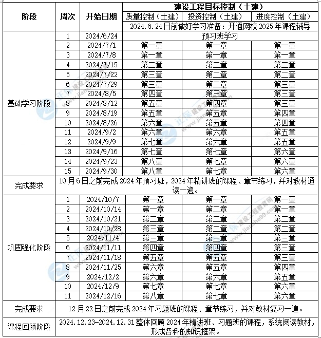 2025年監(jiān)理工程師土建控制學(xué)習(xí)計(jì)劃時(shí)間表