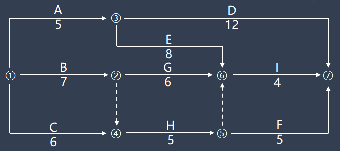 對于這條規(guī)則,很多小伙伴感覺理解起來有些晦澀。我們選取一個實例來稍加解釋,希望能幫助小伙伴們加深對這條規(guī)則的理解。由于雙代號和單代號的繪圖規(guī)則基本相同,只是有一些細微偏差,我們下面利用雙代號網(wǎng)絡(luò)圖來解釋一下這個規(guī)則。