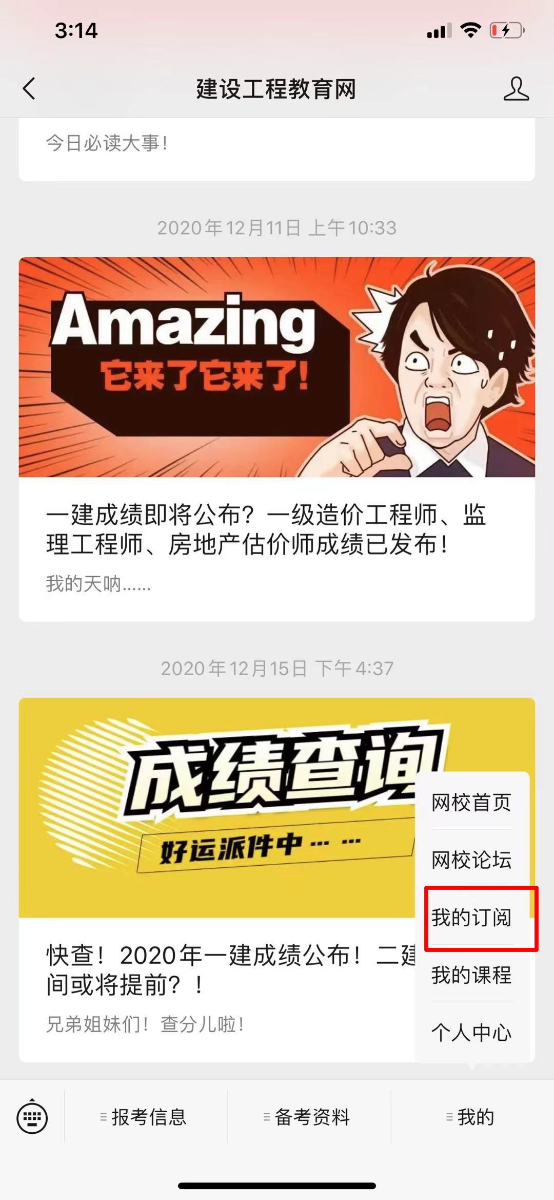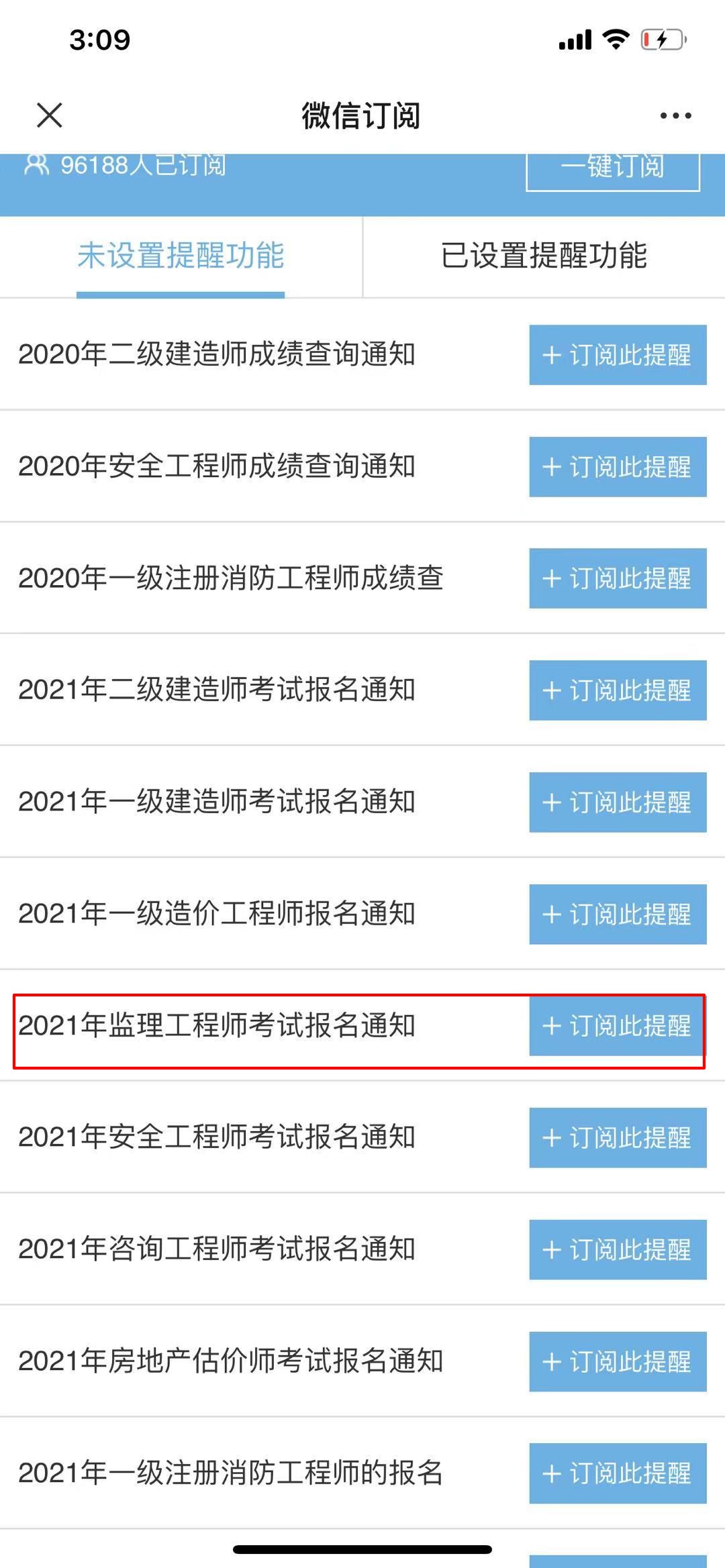 第三步:選擇“2021年監(jiān)理工程師考試報名通知”-訂閱此提醒