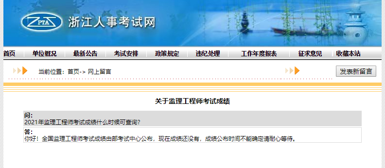 浙江人事考試網(wǎng):監(jiān)理成績由部考試中心公布,成績公布時(shí)間不能確定