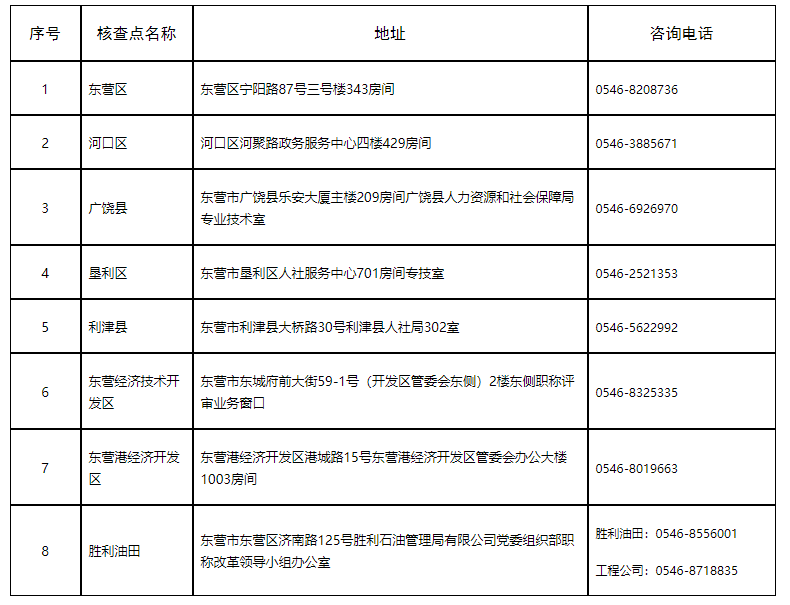 (四)資格核查工作由市人事考試機(jī)構(gòu)負(fù)責(zé)組織,全市核查時間統(tǒng)一定于3月13日——3月17日16:00(節(jié)假日除外)。為做好我市人事考試資格核查、復(fù)核工作,在全市設(shè)立8個核查點(diǎn)(見下表):