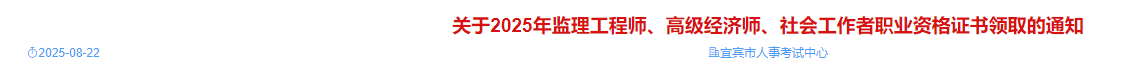 四川宜賓考點2025年監(jiān)理工程師證書領(lǐng)取通知已發(fā)布,詳情如下: