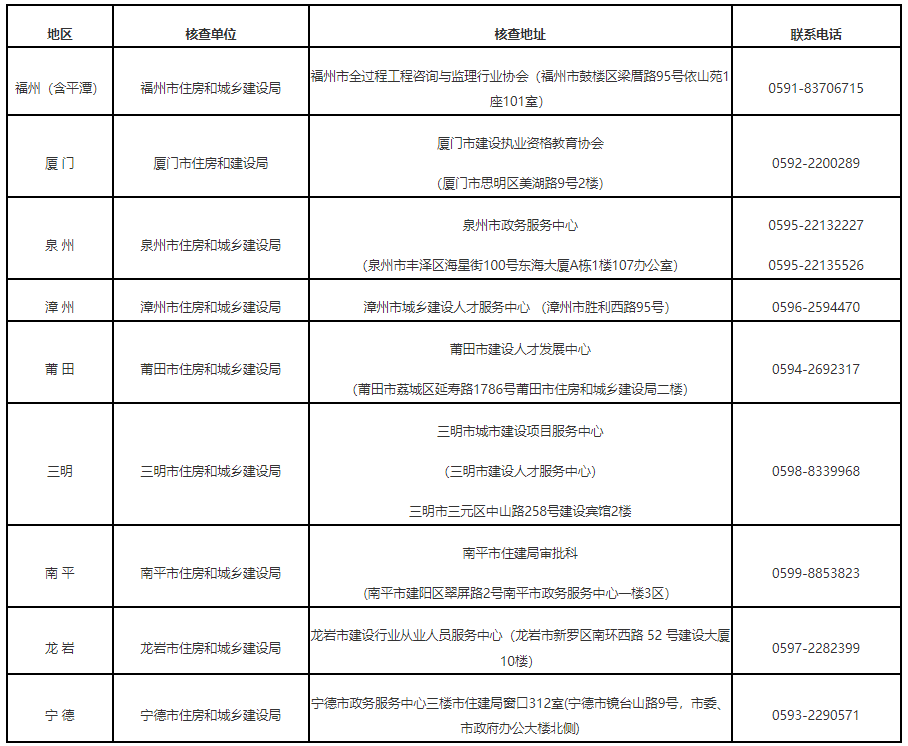 (八)考后資格核查時間、發(fā)放證書時間及方式以“福建省住房和城鄉(xiāng)建設廳http://zjt.fujian.gov.cn/—行業(yè)管理—執(zhí)業(yè)注冊—資格考試”欄目通知為準。