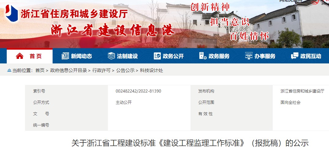 ?關(guān)于浙江省工程建設標準《建設工程監(jiān)理工作標準》(報批稿)的公示