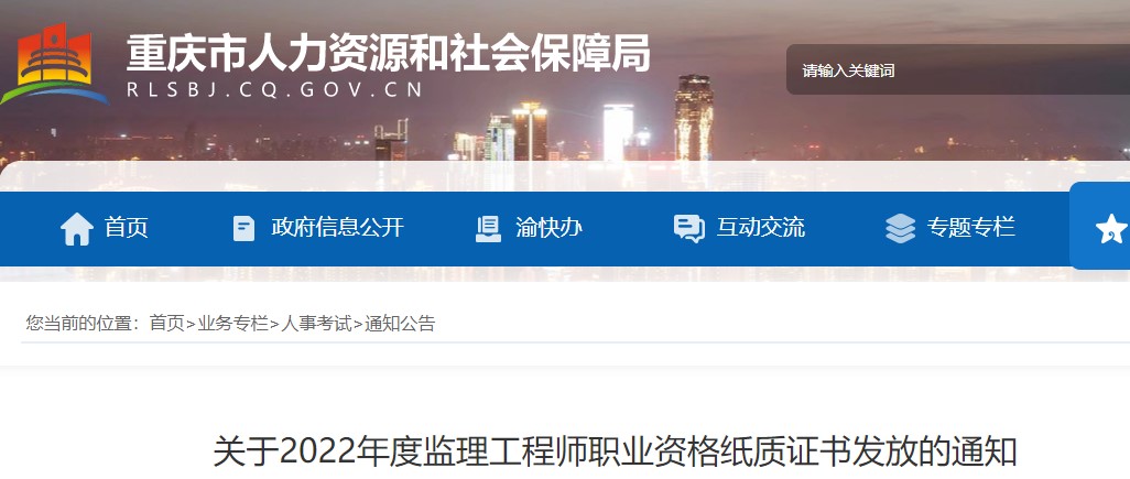 重慶市?關(guān)于2022年度監(jiān)理工程師職業(yè)資格紙質(zhì)證書發(fā)放的通知