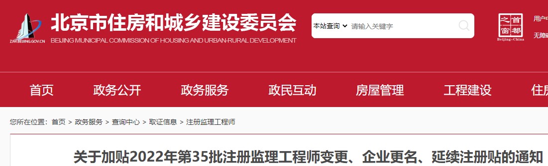 北京關(guān)于加貼2022年第35批注冊監(jiān)理工程師變更、延續(xù)注冊貼的通知