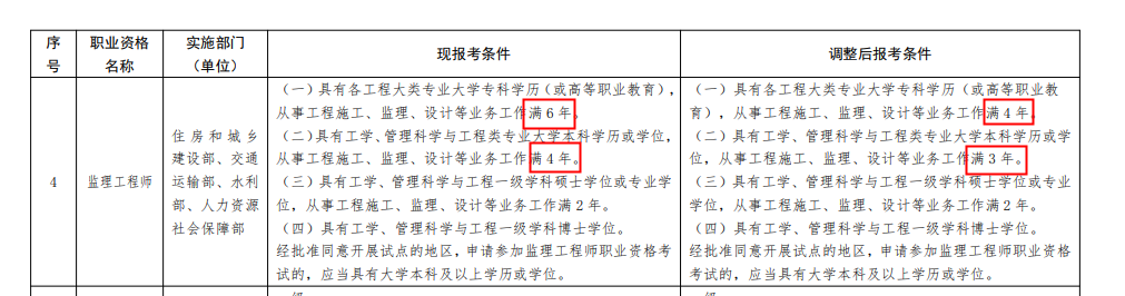 【落實(shí)】監(jiān)理工程師報(bào)考條件改革?。?!快速查看>>