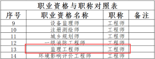 河南人社局發(fā)布《河南省人力資源社會保障廳關(guān)于工程技術(shù)人才職稱制度改革有關(guān)問題的通知》,文中提到,取得監(jiān)理工程師職業(yè)資格的人員,可直接聘任工程師。具體內(nèi)容如下: