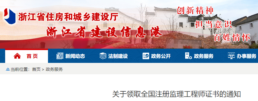 浙江關(guān)于領(lǐng)取2022年全國注冊(cè)監(jiān)理工程師證書的通知
