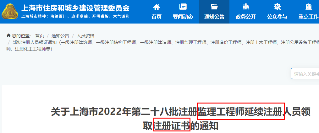 上海2022年第二十八批注冊監(jiān)理工程師延續(xù)注冊人員領(lǐng)取注冊證書的通知