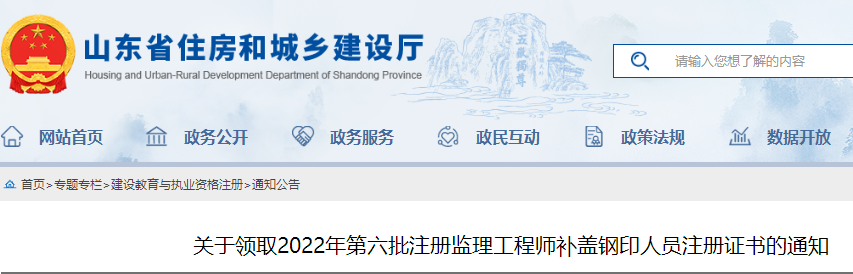 山東領(lǐng)取2022年第六批注冊(cè)監(jiān)理工程師補(bǔ)蓋鋼印人員注冊(cè)證書的通知
