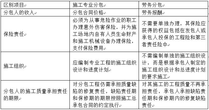 C、對(duì)施工質(zhì)量承擔(dān)的責(zé)任不同,驗(yàn)收合格后勞務(wù)分包人不再對(duì)工程質(zhì)量承擔(dān)責(zé)任