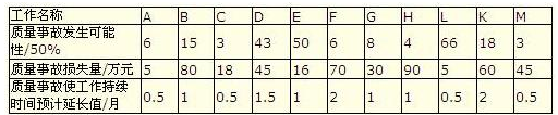 為有效控制工程質(zhì)量,咨詢工程師對(duì)各工作進(jìn)行了初步風(fēng)險(xiǎn)分析,風(fēng)險(xiǎn)對(duì)項(xiàng)目產(chǎn)生的影響見下表。